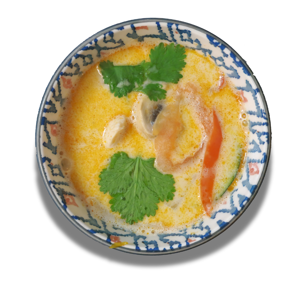 Indulge in the creamy and comforting taste of our Coconut Soup, a rich and velvety Thai-inspired favorite. Made with coconut milk, fresh mushrooms, lime juice, and a touch of chili, this soup is available in vegetarian (tofu), chicken, or shrimp options for a personalized touch.